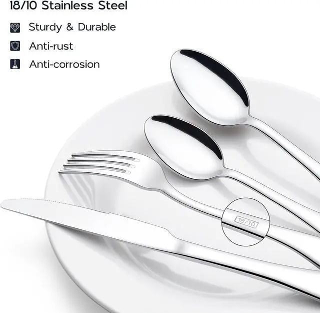 18/10 Stainless Steel: our tableware set is made of high-grade 18/10 stainless steel, rust and corrosion resistant, sturdy and durable to ensure long-term use, dishwasher safe to save your labor and time