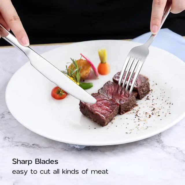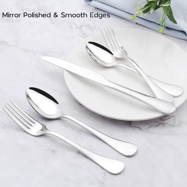 Exquisite Craft: highly mirror polished, classic design with clean lines makes the silverware set look shiny and elegant, fork tines are finely finished to be smooth, and its safe to use with no rough spots