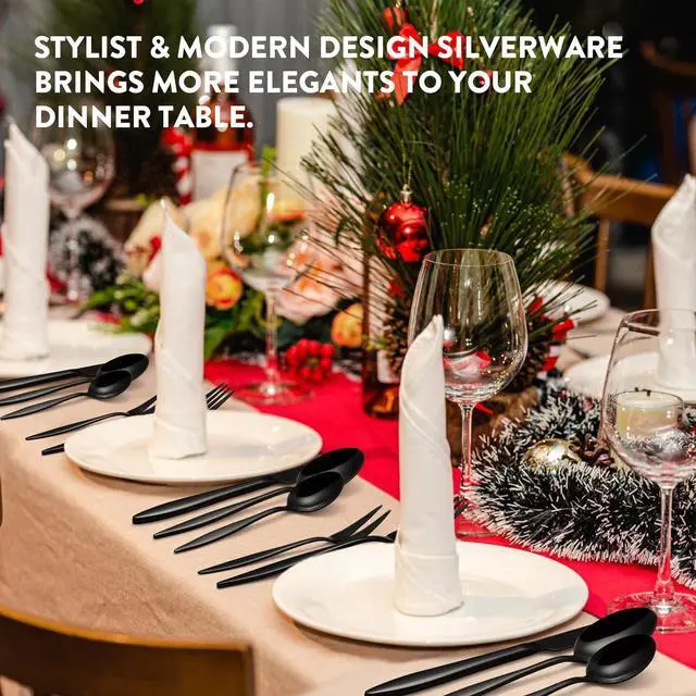 Premium Quality and Easy Care-- The flatware set is made of high quality 18/0 stainless steel. Every silverwear is well made, durable and sturdy and rustproof. They are mirror polished and smoothen edge for a plesant using. This silverwear set with sleek surface allow you easy handling and cleaning. And it' s DISHWASHER SAFE.