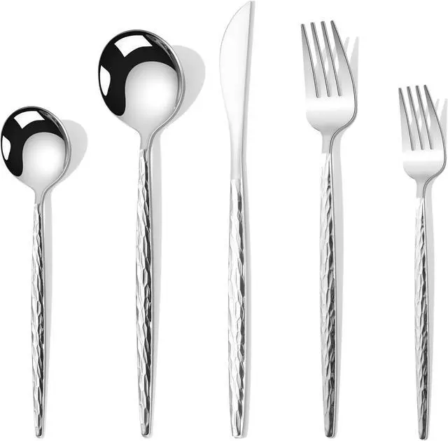 Hammered Silverware Set,30 Piece Stainless Steel Flatware Set for 6,Modern Cutlery Set,Includes Spoon Fork Knives Set,Home Kitchen and Restaurant,Dishwasher Safe (Silver)
