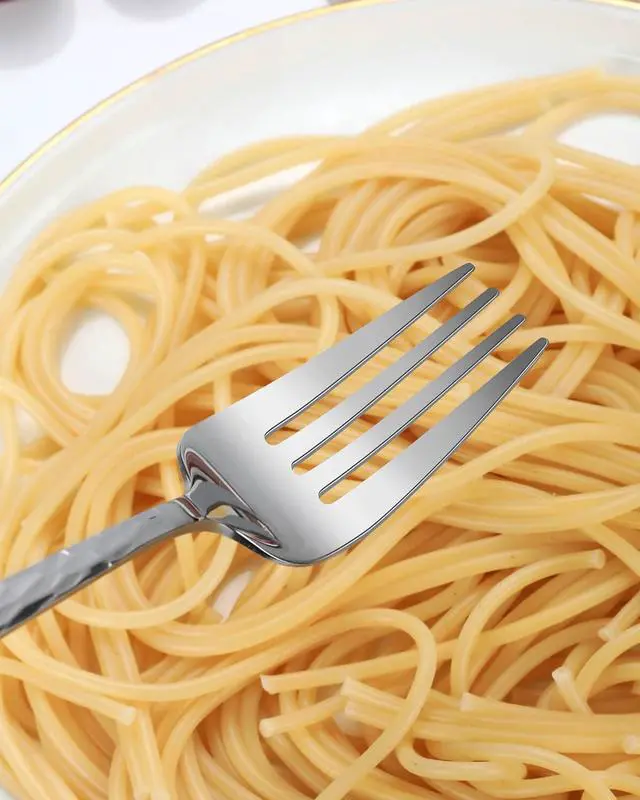 • Design InspirationThis cutlery set has been refined from its original classic design, with the incorporation of a hammered texture on the handles, enhancing both its functionality and modern aesthetic. The hammered design on the handles not only provides better grip but also adds a contemporary touch