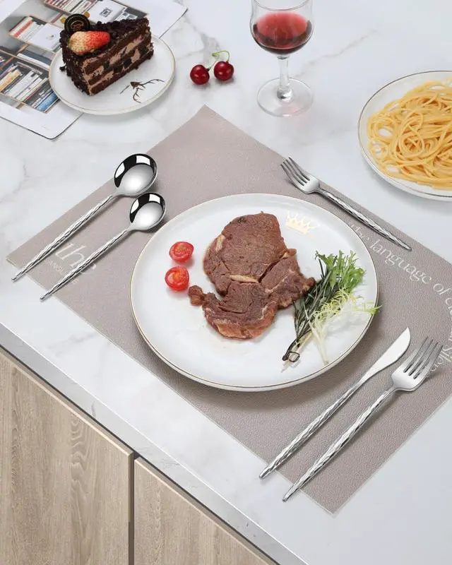 Premium Stainless SteelThis flatware set is crafted from high-quality stainless steel, ensuring durability and longevity. Additionally, it features a mirror-polished finish, making it easier to clean and maintain