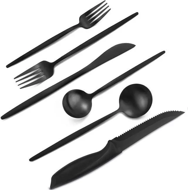Add steak knife - VANVRO Stainless steel matte silverware sets constantly enrich the product line, This time, a tableware set with steak knife was added, which has more comprehensive functions. What a happy thing it is for the whole family to enjoy steak dinner together.