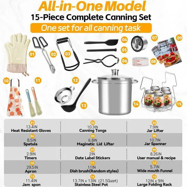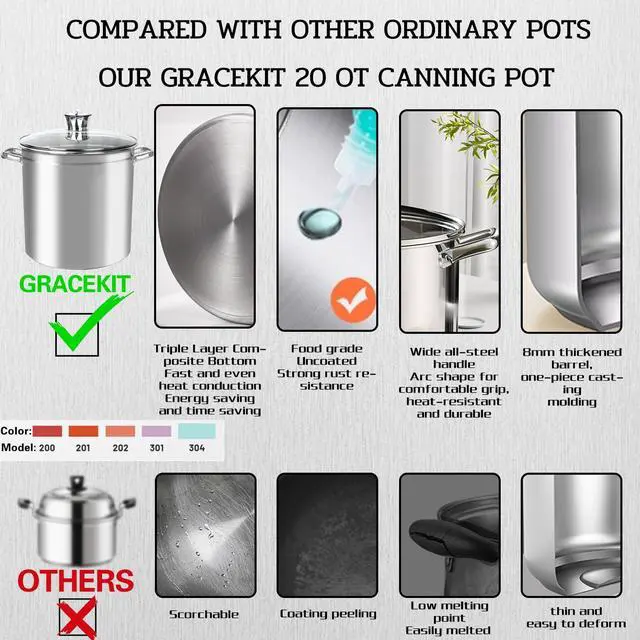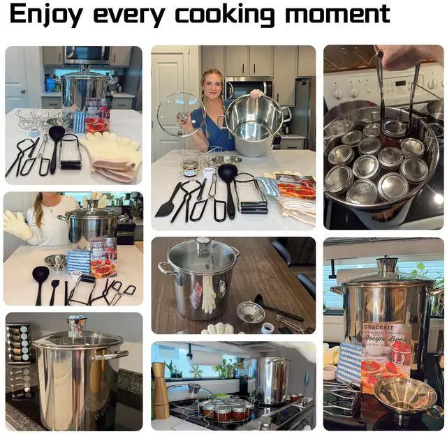 GraceKit Canning Pot Water Bath Canner Stock Pot,Canning Kit for Beginners, Canning Supplies with Rack,Lid & Starter Tools Kits Stainless Steel Water Bath Canner 21.5 QT Starter Kits