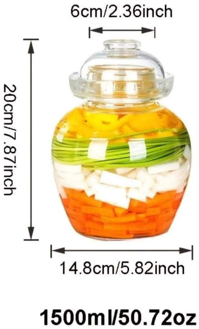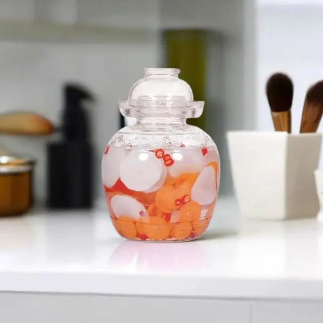 How to use this pickle jar: Please pour some water around the bottom of the lid to seal it, so that gases generated during the fermentation process can escape, but external air cannot enter the jar. This can maintain air circulation and avoid oxidation and odor generation.