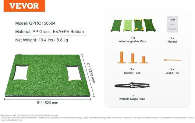 - 4-IN-1 Practice Golf Mat: The 5' x 4' golf hitting mat comes with 5 interchangeable mats to cater to multiple golfing practice needs, such as honing your swing, chipping, and driving skills, great for everyone, from beginner to pro.