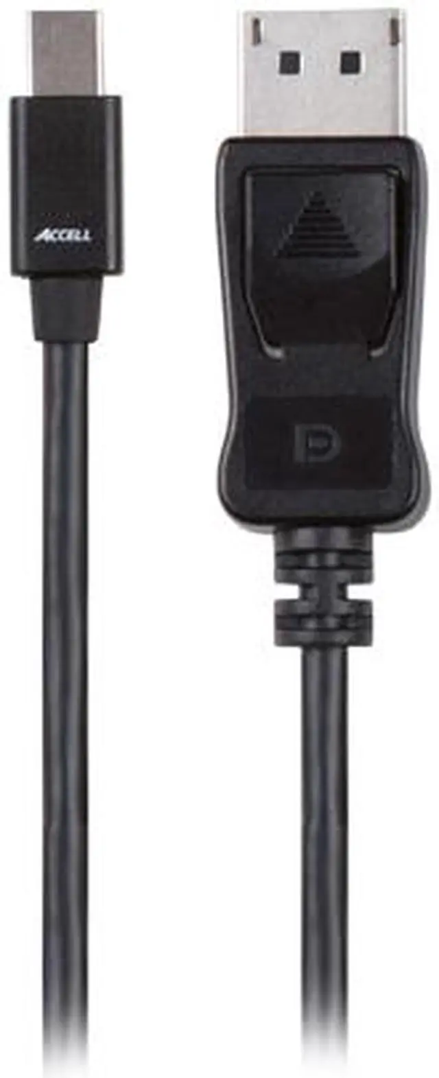 This DisplayPort cable supports PC resolutions of up to 3840x2160, stereoscopic 3D graphics and all HDTV resolutions including 1080p and 4Kx2K. The cable also supports daisy chaining of multiple monitors. The UltraAV DisplayPort cable transmits uncompressed audio, extended color depths and features a throughput of up to 5.4 Gbps per lane, for a maximum total throughput of up to 21.6 Gbps, twice the throughput of DisplayPort 1.1 a. The Accell Mini DisplayPort to DisplayPort 1.2 cables are HBR2 rated and certified by DisplayPort (VESA) to be fully DisplayPort compliant. Fully DisplayPort Version 1.2 Compliant DisplayPort 1.2 compatible - supports version 1.1 a Computer resolutions up to 3840x2160 and 3D video Supports all HDTV resolutions including 1080p and 4K Latching connectors for a secure, reliable connection Up to 5.4 Gbps per lane throughput - 21.6 Gbps total