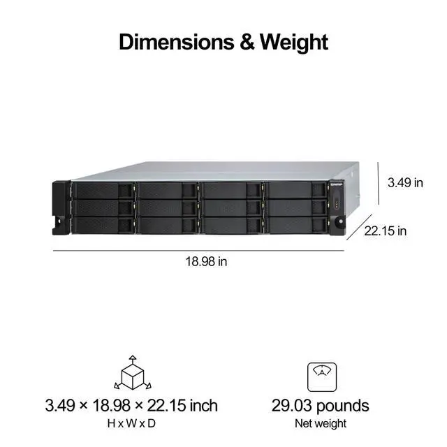 TL-R1200S-RP Rackmount JBOD storage enclosure allows you to back up and expand your QNAP NAS, Windows® and Ubuntu® computers and servers. The TL-R1200S-RP features twelve 3.5-inch SATA 6Gb/s drive bays, TL-R1200S-RP comes with a QXP PCIe card for connecting the enclosure using a SFF-8088 (or SFF-8644) cable. It provides reliable read/write performance for smooth storage and backup tasks.