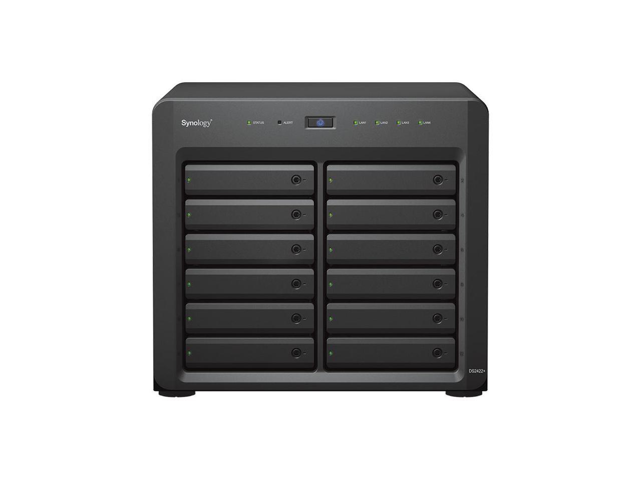 Synology DiskStation DS2422+ NAS Server with Ryzen 2.2GHz CPU, 32GB Memory, 192TB HDD Storage, 4 x 1GbE LAN Ports, DSM Operating System