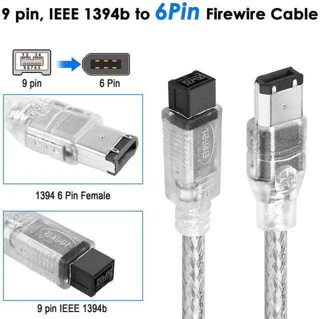 - This is a FireWire cable that features 9-pin 1394b male to 6pin 1394a male connectors that enable you to connect between 9-pin FireWire 800 (1394b) and 6-pin FireWire 800 (1394a) devices.