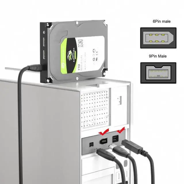IEEE 1394 Firewire 800 9-pin to 6-pin Cable FireWire 800 to 400 9p to 6p Capture Cord 1.8m