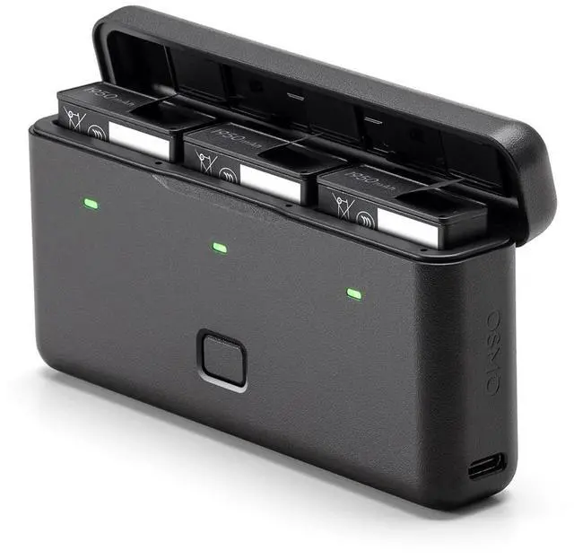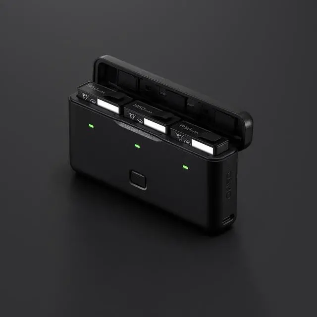 Stores three batteries and two microSD cards. Intelligently fast charges three batteries, and can be used together with those batteries as a power bank to charge other devices like your smartphone.