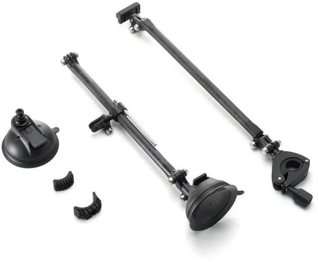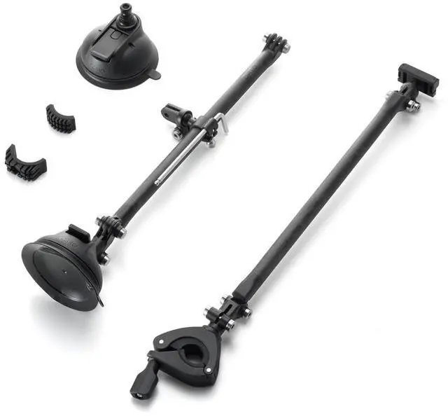 This kit features high-strength carbon fiber tubes, offering both durability and portability. With both a suction cup mount and a handlebar mount, it can be securely attached to car windows for in-vehicle filming, or firmly mounted on bicycle handlebars for outdoor cycling shots. The folding arm supports multi-angle adjustment, enabling you to capture a wide range of perspectives. The magnetic quick-release design allows for one-way magnetic attachment to the camera-fast, secure, and ready for any adventure.