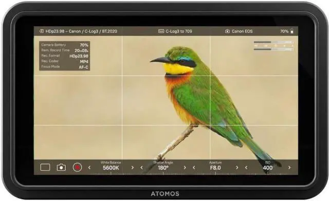 Atomos Shinobi II 5.2" HDMI HDR Monitor. The Shinobi II has been designed for vloggers, photographers, and content creators with numerous feature improvements over the original Shinobi, including an even slimmer and lighter body design, a 50% brighter display at 1500 cd/m², USB-C camera control for Canon/Panasonic/Sony/Z CAM with status indicators, a new AtomOS 11 interface, USB-C PD power I/O, a locking HDMI and USB-C adapter, updated image tools, and ultra-low battery consumption so the monitor can run all day on only a single battery.