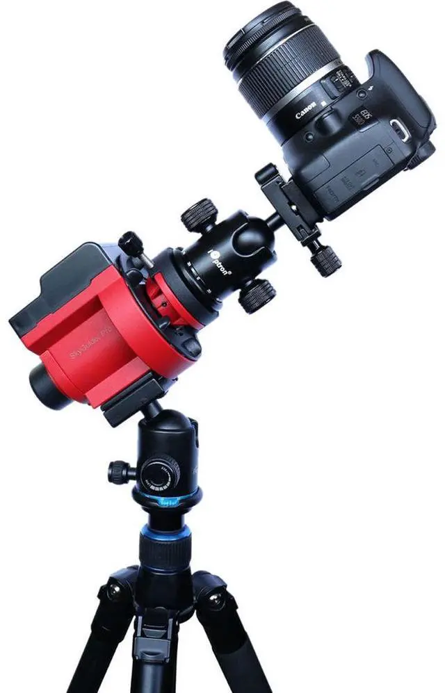Explore the cosmos with the SkyGuider Pro Camera Mount Full Package from iOptron, a leader in the camera tracker market. This advanced, professional-grade device is designed for astrophotography enthusiasts, offering a sturdy and durable all-metal mechanical structure that can handle a payload of up to 11 lbs (5kg), making it suitable for heavy camera/lens systems and even lightweight telescopes.