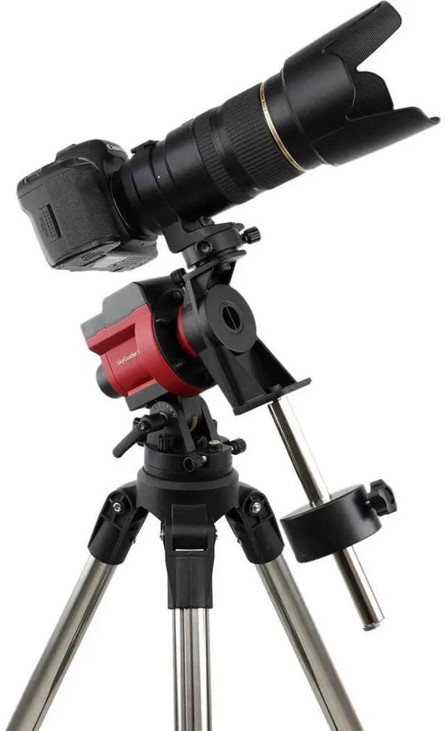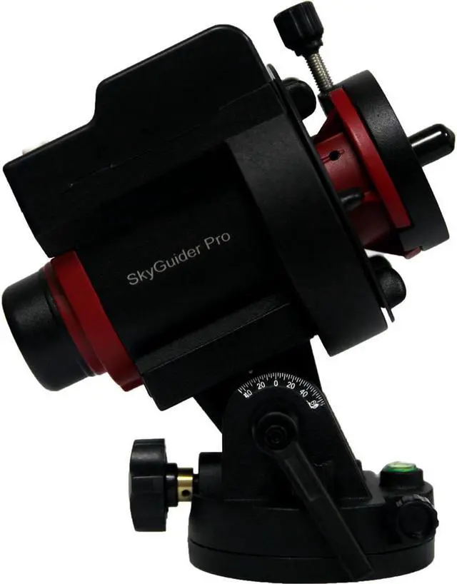 The SkyGuider Pro Camera Mount is equipped with a detachable alt-azi base with fine latitude and azimuth adjusters, ensuring easy and precise polar alignment. It also includes the iOptron AccuAlign dark-field illuminated polar scope with adjustable illumination, offering different brightness levels for optimal visibility.