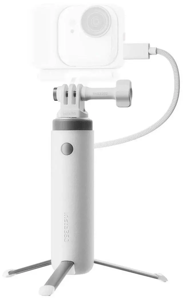 Your all-day camera aide. Power that keeps up. Shoot and charge at the same time so you never miss a thing. Full control at your fingertips. Connect directly to Insta360 Ace Pro 2 or GO Ultra for instant recording. Stands to attention. Features a handle that flips into a stable desktop tripod whenever you need it. Shoot your way. Attach your favorite Insta360 accessories to unlock new shooting possibilities. Mini but mighty. Attach to the 1/4" mount to store, charge, and power up wherever you go.