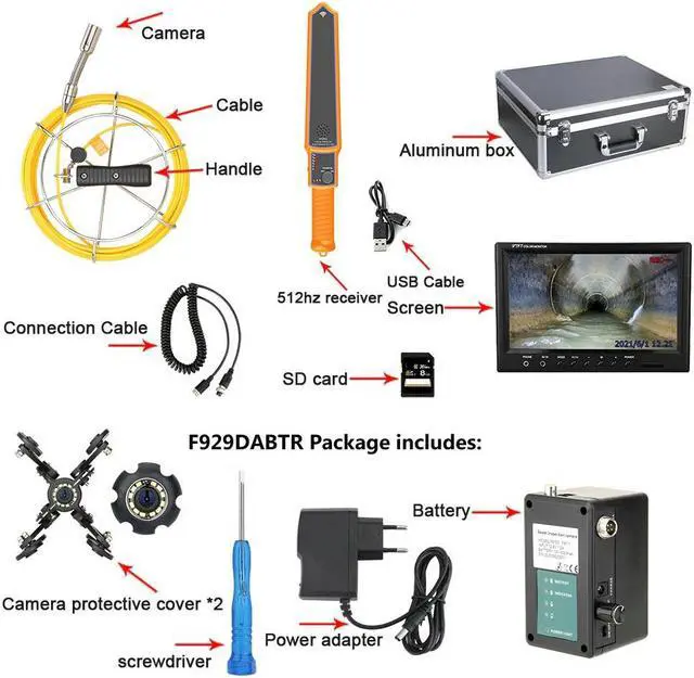 Pipeline Wall Sewer Inspection Snake Camera built-in SD Card slot, 8GB TF card included, it is avialiable to view live video and save video clips and photos. You can record the inspections and playback via the pipe system. (DVR Edition)