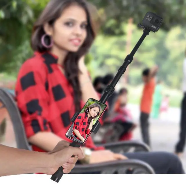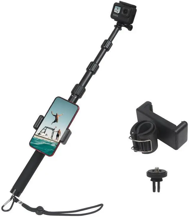 With a Phone holder fits any phones devices within 4inch to 6inch onthe real-time viewfinder will be controled by phone remote, this gopro monopod can help to achieve simultaneous shooting of your smartphone and gopro action camera