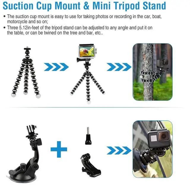 - Removable Suction Cup Mount:The suction cup mount is easy to use for camera taking photos or recording in the car,boat,motorcycle and so on with its strong suction cup.