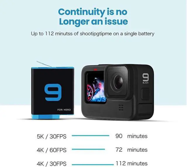 Safe To Use: Integrated intelligent control chip help you use Hero 9/10/11 cameras safer. Built-in over-charge, over-discharge, over-voltage, over-current and over-heating protections. Multiple circuit protection ensures both safety and stability. Exclusive offering of high performance and long lasting usage.