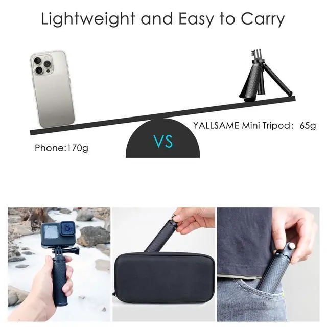YALLSAME 3 in 1 Mini Selfie Stick Tripod for GoPro/Action Cameras/Cell Phones