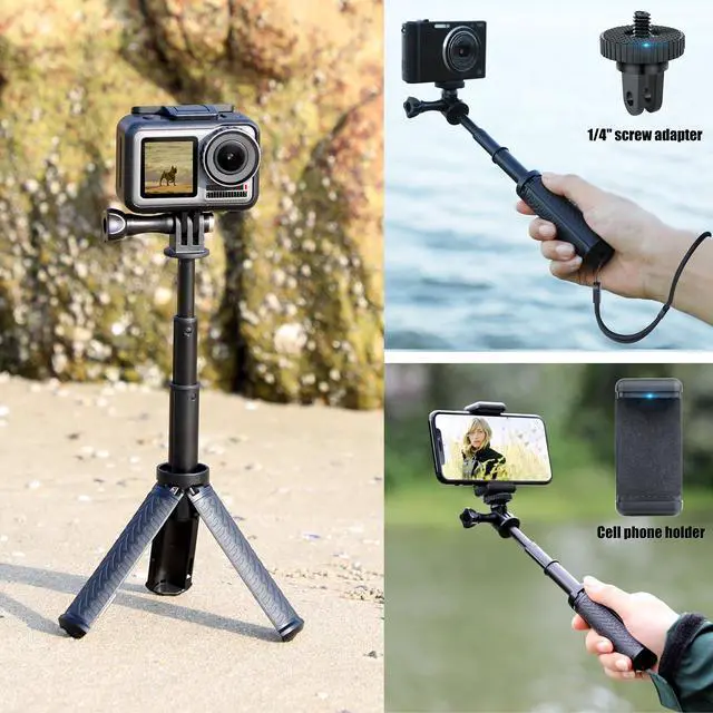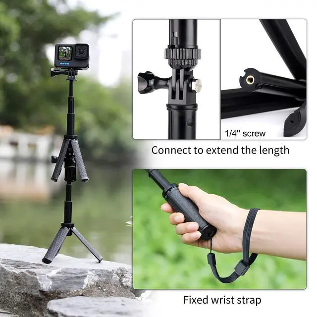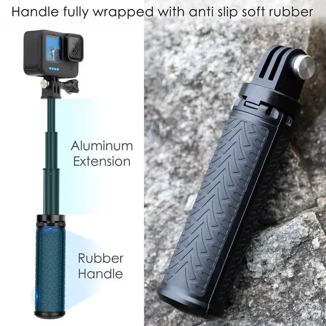 This mini extendable action camera selfie stick for GoPro is designed for people who want a pocket-sized selfie stick, so it's only4.7 to 9.2 inches long.