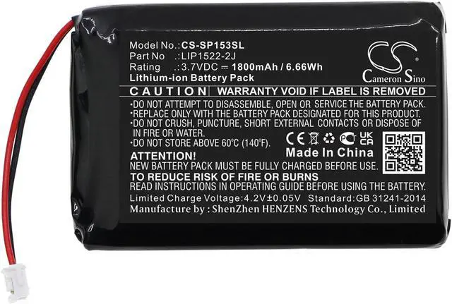 Battery Part Numbers LIP1522-2J Capacity: 3.7V 1800mAh / 6.66W h