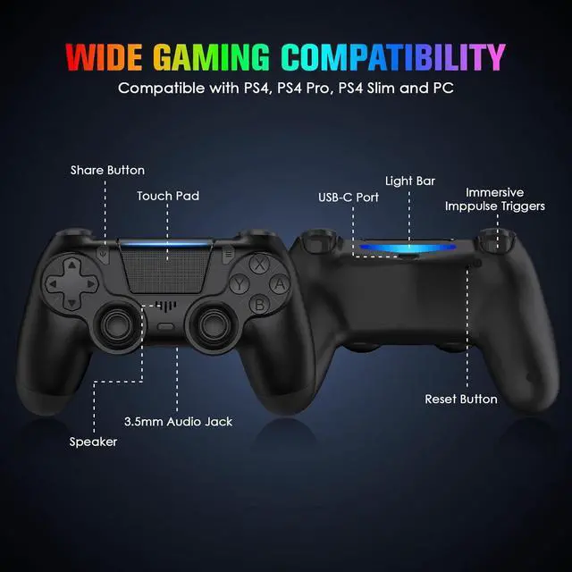 Stable Compatibility: These controllers are widely compatible with PS4/Pro/Slim consoles and PC. It supports USB wired connection.