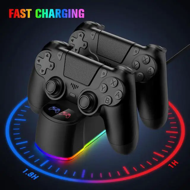 LED Charger Dock Station: Powered via micro USB from the PS4 console, PC, or AC adapter. It offers the fastest charging speed, fully charging your controller within 1.8 hours, saving you time. (Blue light indicates the controller is fully charged, while red light indicates it is charging. )