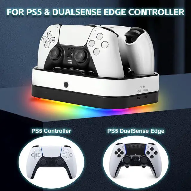 **Dual Charging Capability**: This charger can power up two ps5 controllers simultaneously and is compatible with both standard DualSense and DualSense Edge controllers, although extra attachments like grips may need special considerations.