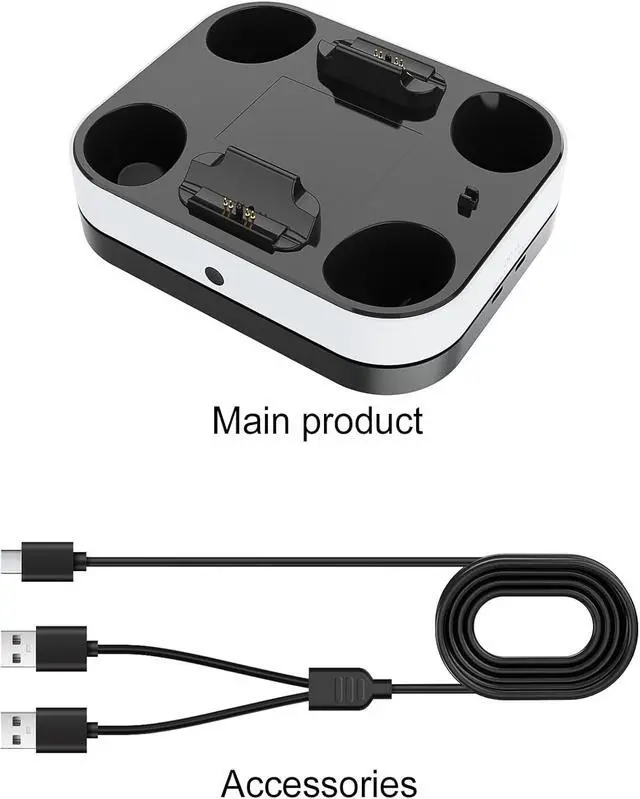 ** Package includes**: 1 x PS5 controller charger, 1 x 3.3 ft Type-C Charging Cable, Connect the 2 USB port charging cable to the PS5 console without an adapter. 1 x user manual.