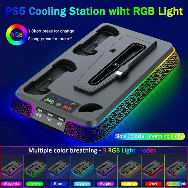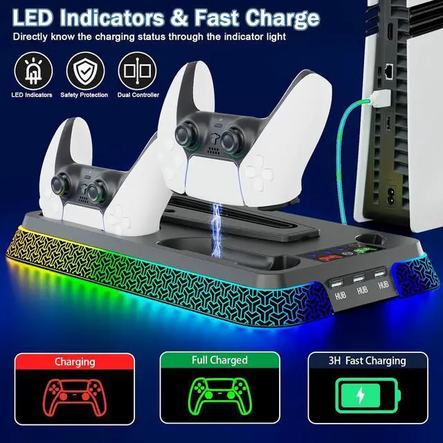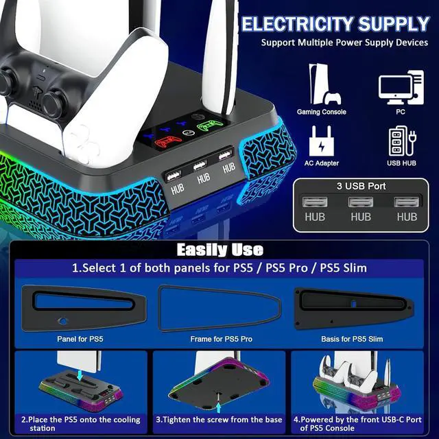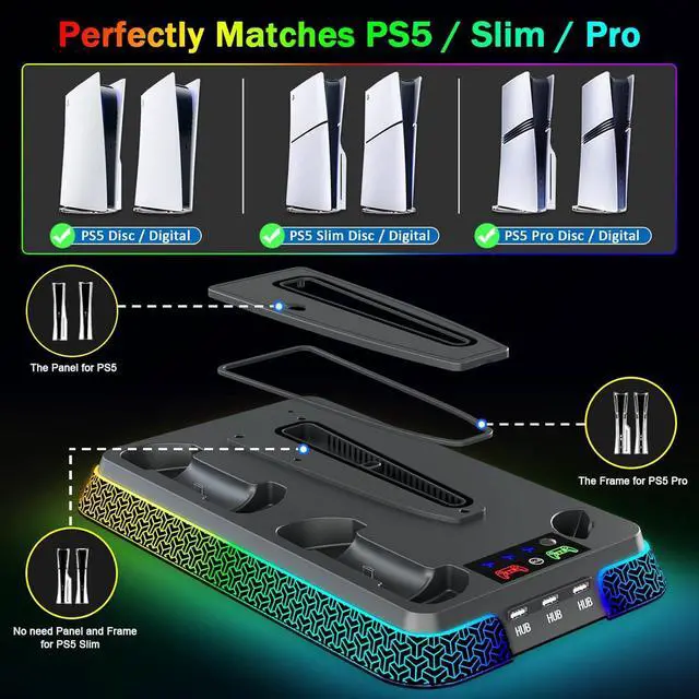 Universal Compatibility - Our ps5 cooling station designed to fit all PS5 series consoles, including PS5 Slim, PS5 Standard (Digital/Disc), and PS5 Pro. This versatile PS5 stand ensures seamless integration with your PS5 gaming setup, no matter which PS5 model you own.