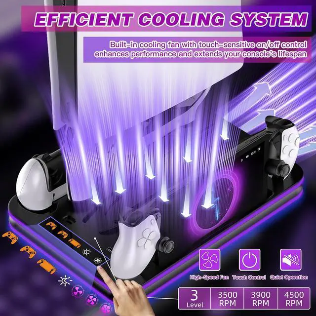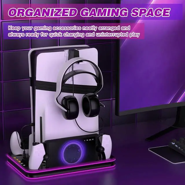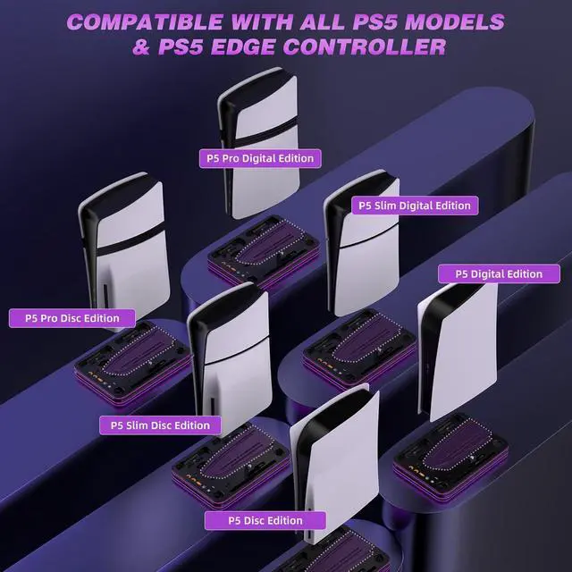 PlayStation Console Versions: Works with PlayStation 5 Disc, Digital, Slim, and Pro editions. This multifunctional stand includes a magnetic charging dock for the PS Portal and supports Edge controllersideal for users with multiple accessories.