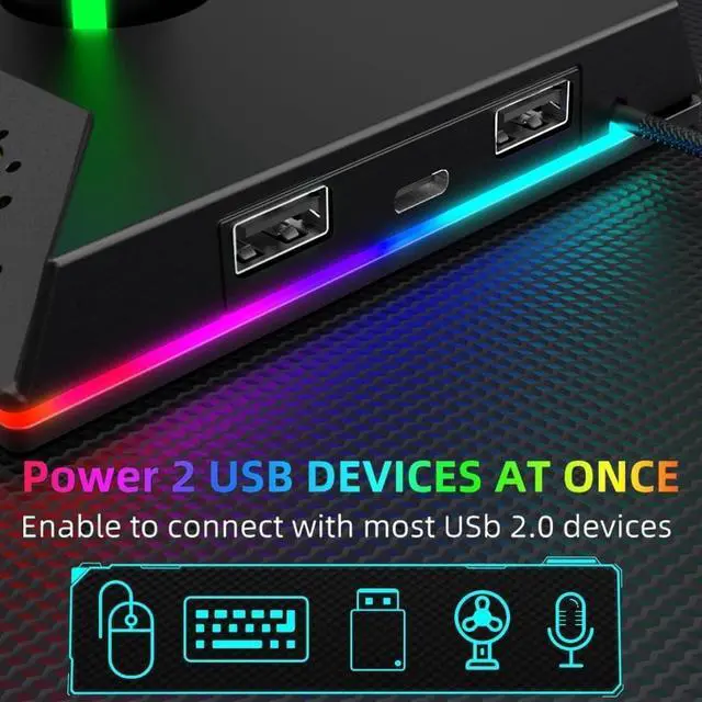 Perfect Gaming Accessories: Headphone stand designing to hanger your headphone, save the desk space. RGB light designing to create a fantastic gaming atmosphere. USB Ports designing provide you more function.