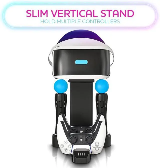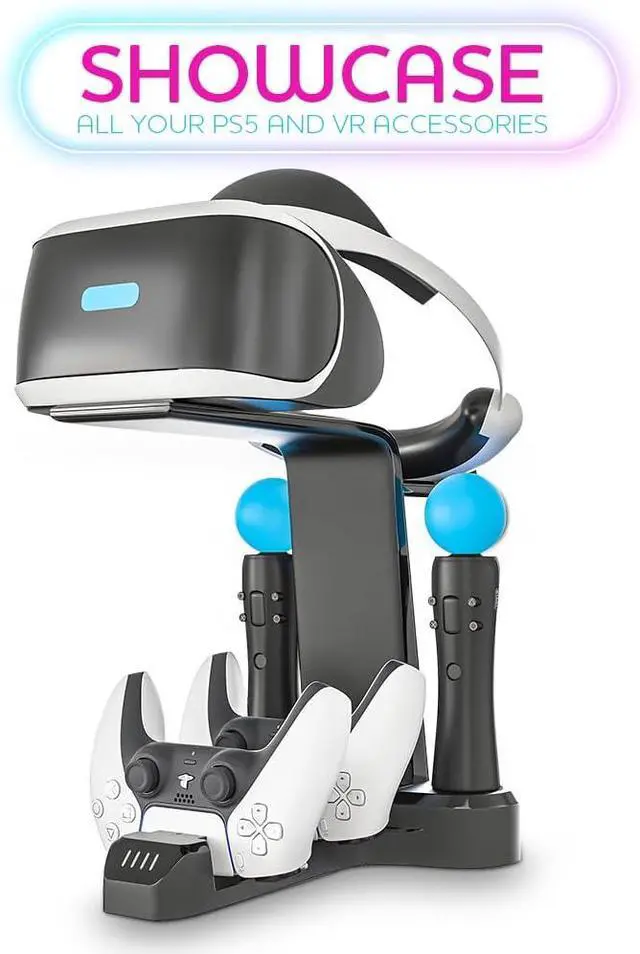 [Sleek Design for Display and Power]: Showcase and charge your VR headsets playstation 5 and controllers in one sleek, space-saving stand.