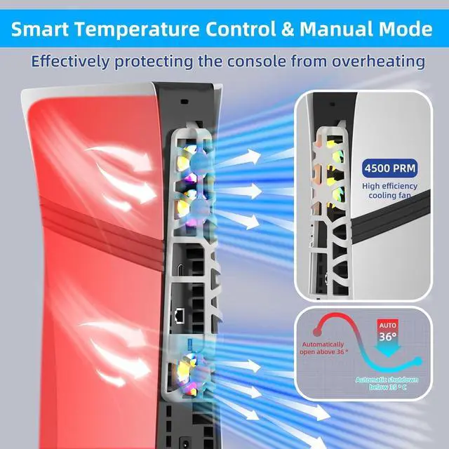 PS5 Pro Gamers: Designed for PlayStation 5 Pro, this cooling fan automatically activates when internal temps exceed 36°C and shuts off below 35°C, ensuring quiet, efficient cooling during long gaming marathons on your ps5 pro console