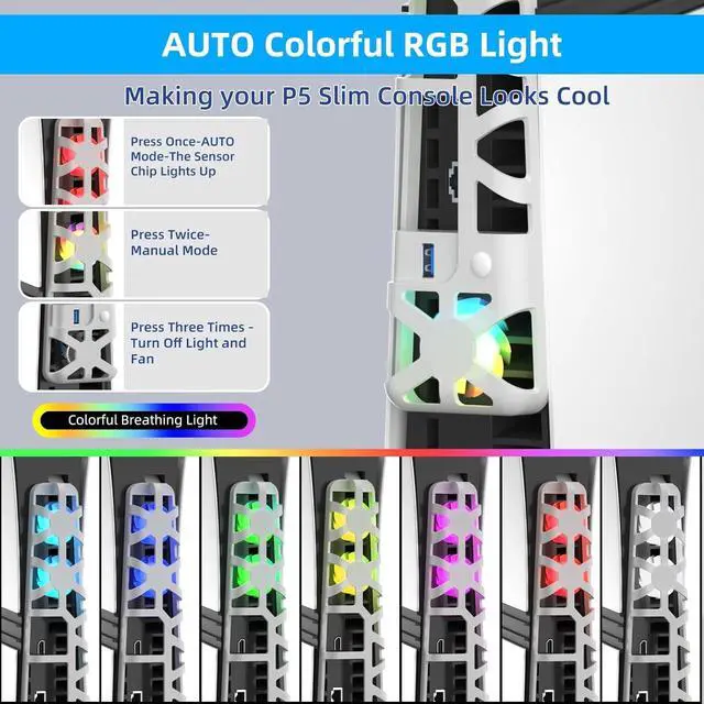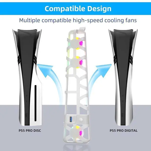 Immersive RGB Lighting for Next-Level Vibes: The ps5 pro fan glows with soft, rotating RGB lighting, turning your ps5 pro console into a stylish setup centerpiece. Perfect for streamers or players who crave a visual gaming environment