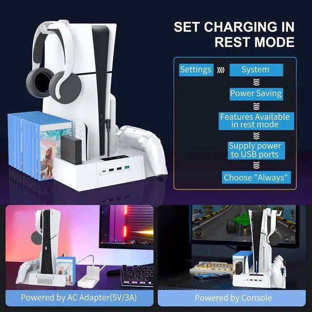 Warm Tips: Fivtek ps5 cooling station compatible for 2023 Playstation 5 Slim Disc/ Digital & 2020 Playstation 5 Standard Disc/ Digital Console; NOT work for 2024 Playstation 5 Pro Console.
