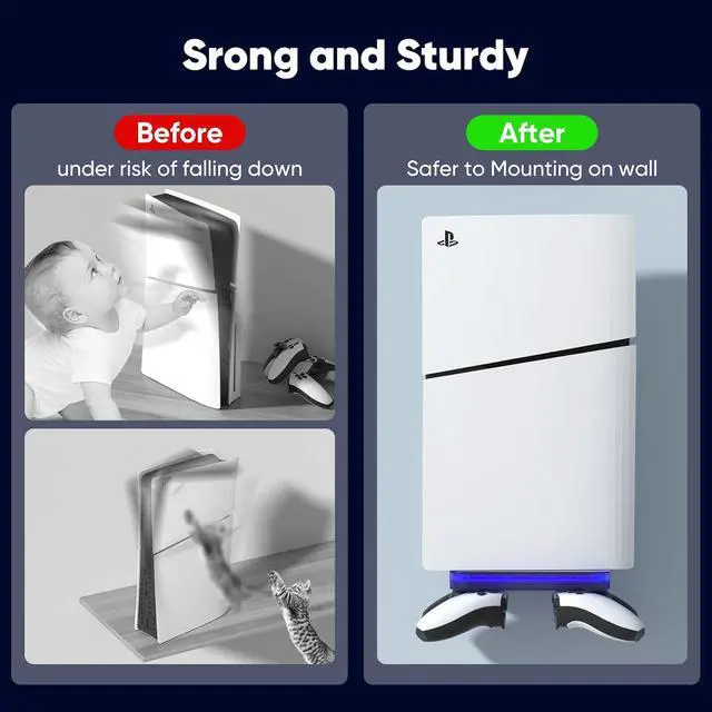Universal Compatibility Fits All PS5 Models Designed to support every PS5 version, including PS5 Pro, PS5 Slim, Disc Edition and Digital Edition. One mount for all setups, no need to worry about model differences.