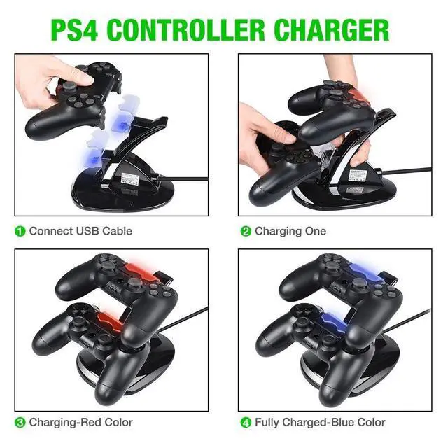 Dynamic LED Indicator, Real-Time Charging Status: The Front LED lights of the PS4 Controller Charger shows charging progress: Blinking lights = charging, Solid lights = fully charged. No need to check constantlystay in control of your game.