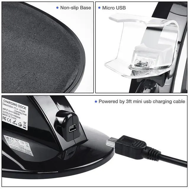 Smart Protection, Safe Charging 24/7: The Controller Charger Dock Station for PS4 is Built-in intelligent chip with overcharge, overvoltage, and short-circuit protection. Safely charge overnight without damaging your controller.