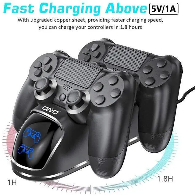 llows you to conveniently store and charge 2 PS4 controllers above 5V/1A,applying to your computer, PS4/Slim/Pro console, wall adapter, charging port and so on.