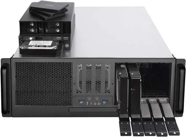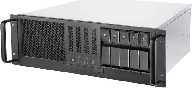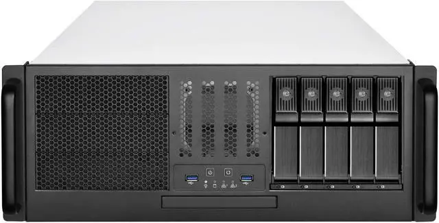 Distinctive front panel features a handle design allowing for easy accessibility to the internal components, along with two USB 3. 0 data transfer ports. Supports SAS 12G/ SATA 6Gb/s high-speed transfer with a hot-swappable and tray-free design. Offers users a wide range of hard drive options including support for 5. 25"/3. 5"/2. 5" hard drives and slim optical drives. Utilizing the typical front-to-back directional airflow, RM41-H08 comes pre-installed with two 80mm PWM fans for exhaust, designed to achieve a rapid heat dissipation effect that does not easily accumulate hot air inside.
