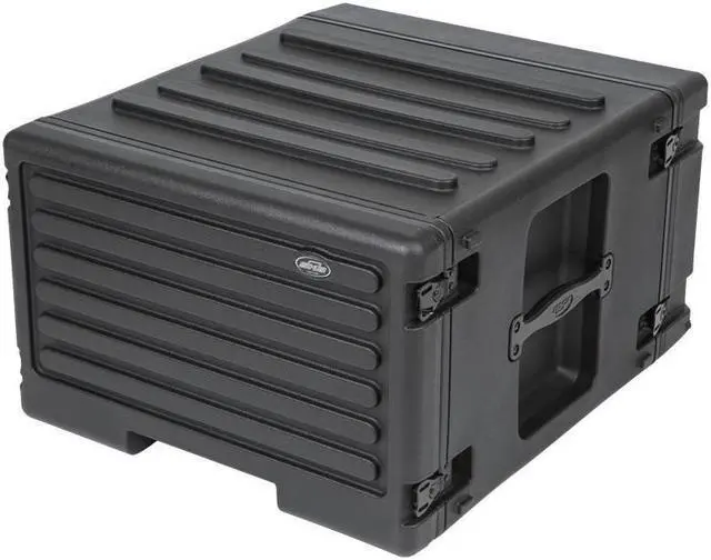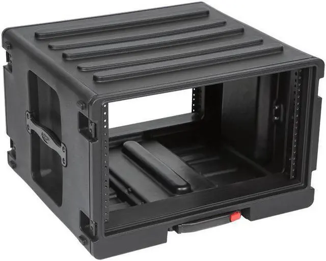 We've completely overhauled our 4U, 6U, and 8U Roto Rolling Racks, incorporating an innovative new design that includes our new one-touch pull handle and back lid mounted wheels for easy transport. We've also updated the exteriors so new Roto Rolling Racks will easily stack with our existing standard and shallow racks. Four military grade butterfly latches secure each lid with an internal rubber gasket that keeps water out so sensitive electronics stay safe and secure in transport.