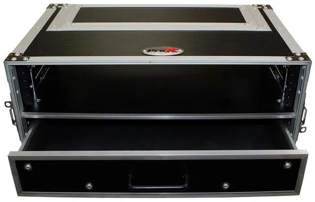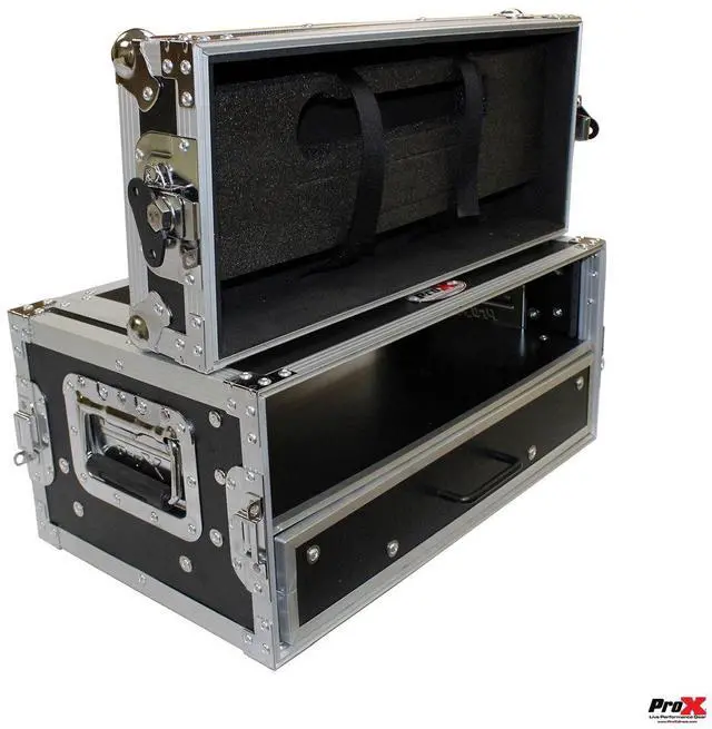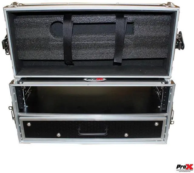 The ProX WM2U2DR 2 Space 2U vertical plus a 2U Drawer, amplifier rack case is the perfect storage solution for convenient security for a wide variety of amplifiers, pro DJ mixers, effects and any other standard 19" width rack-mountable pro audio/DJ/Network gear. The 2U Drawer provides extra storage for cables and more.