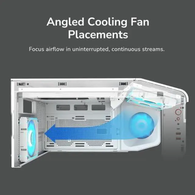 Harmonizing form with function, the FV270 RGBs polyhedral design sets a new standard for airflow dynamics. Placing cooling fans on angled faces ensure uninterrupted, focused streams and the lifted front accesses an additional axis of ventilation, allowing air intake from below. Built-in M/B side 140mm ARGB PWM Fan x2, Bottom 120mm ARGB PWM Fan x 1 & Rear 140mm ARGB PWM Fan x1