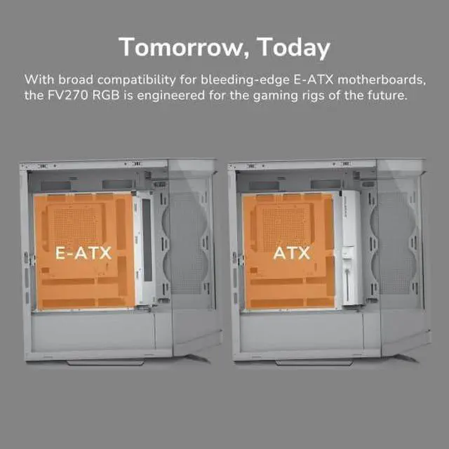 Collapse all4.3 out of 5 starsCOUGAR FV270 RGB MidTower E-ATX Case, 420mm GPU supported,Build-in ARGB PWM Fans,Breathe Streams,Prism of Light, RGB Hub,Filter Guard, Tool-Less Bracket, Center Stage,Cable Management (RGB, Black)