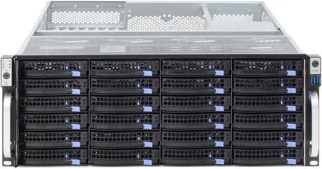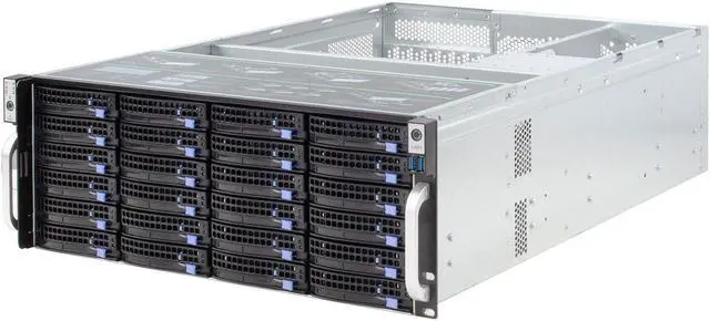 SGCC Hard disk: 24 front 3.5 "HDD (compatible with 2.5" HDD / SSD), 3 built-in 2.5 "HDD / SSD; The hard disk extraction box adopts anti-EMI design, with a light guide column, which can indicate the working state of the hard disk; slide rail design, smooth extraction