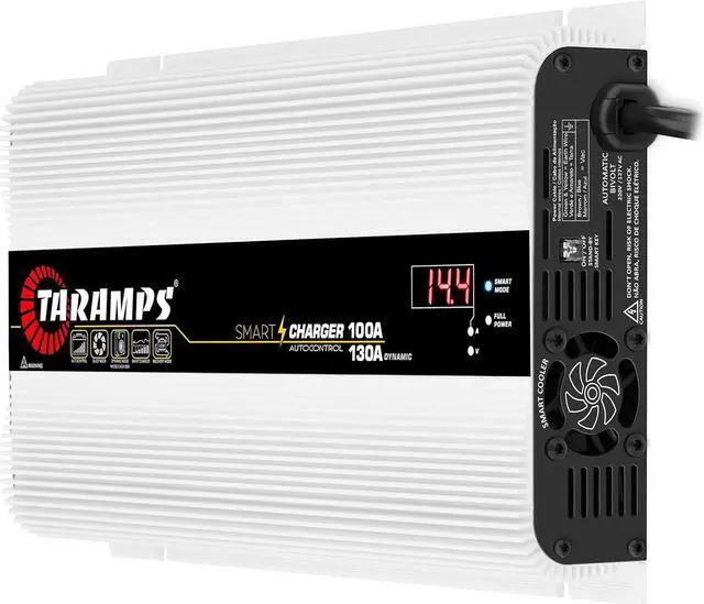 The New Smart Charger 100A/130A is an automotive power supply made of aluminum and modern design, which provides optimal heat dissipation, and now our battery charger can provide 130A in Dynamic Mode. ^^The Smart Cooler system, is an intelligent system that controls the operation of coolers and ventilation, varying their speed according to temperature and output current. ^^For battery cables, the cable need to be 16mm² (5 AWG), the circuit breaker 150A. A circuit breaker must be used near the power supply and don't use cables with gauges smaller than recommended.